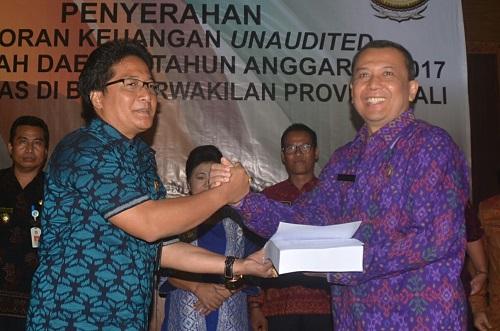 Bupati Badung Serahkan hasil Un-audited Laporan Keuangan Tahun Anggaran 2017