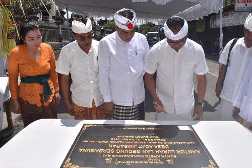 Kantor Lurah dan Gedung Serbaguna Jimbaran Diplaspas, Wakil Bupati Suiasa Tandatangani Prasasti
